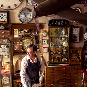 Dans son atelier parisien du 43 rue Madame, dans le quartier parisien de Saint-Germain-des-Prés, François Hubert restaure et vend des horloges anciennes et des pendules de toutes époques.